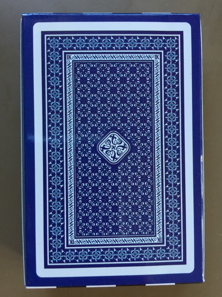ダイソーの2個で100円のトランプと比べると倍の値段だけど質に関してその分いいかというと微妙。ただバックの色のブルーも悪くないし気持ちこちらの方がいい様な気もする。