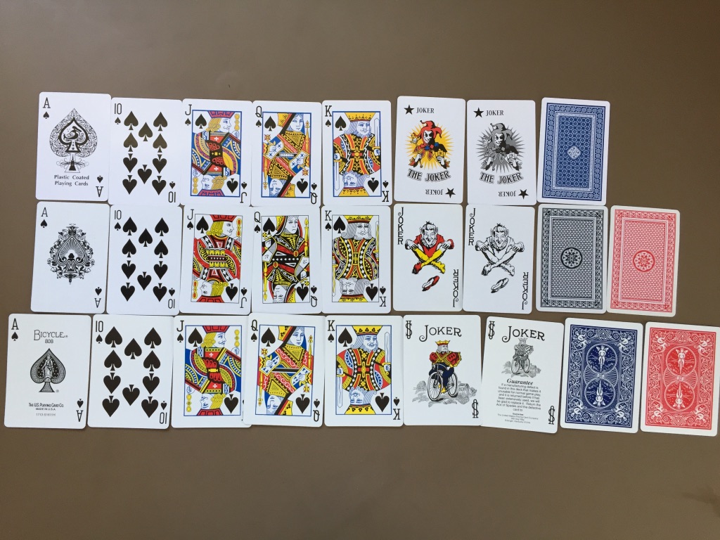 - 上からキャンドゥ、ダイソー、バイシクル。絵柄はバイシクルに似ているね。