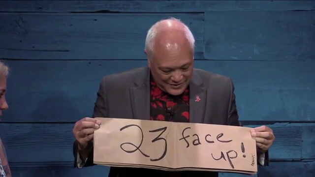 カードを裏と表で混ぜてシェークした後の表のカードの数や色やスーツ(マーク)の数が予言されている。