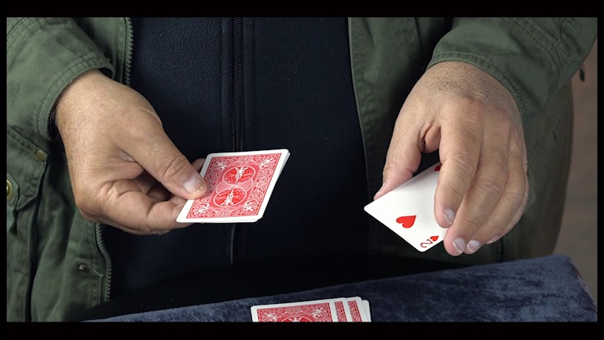 デックから抜き出したパイルから1枚覚えてもらい更に2つに分けたパイルのどちらにあるかを直感で当ててもらう。3回繰り返した後にマジシャンが配っていき止めたカードが客の覚えたカードである。