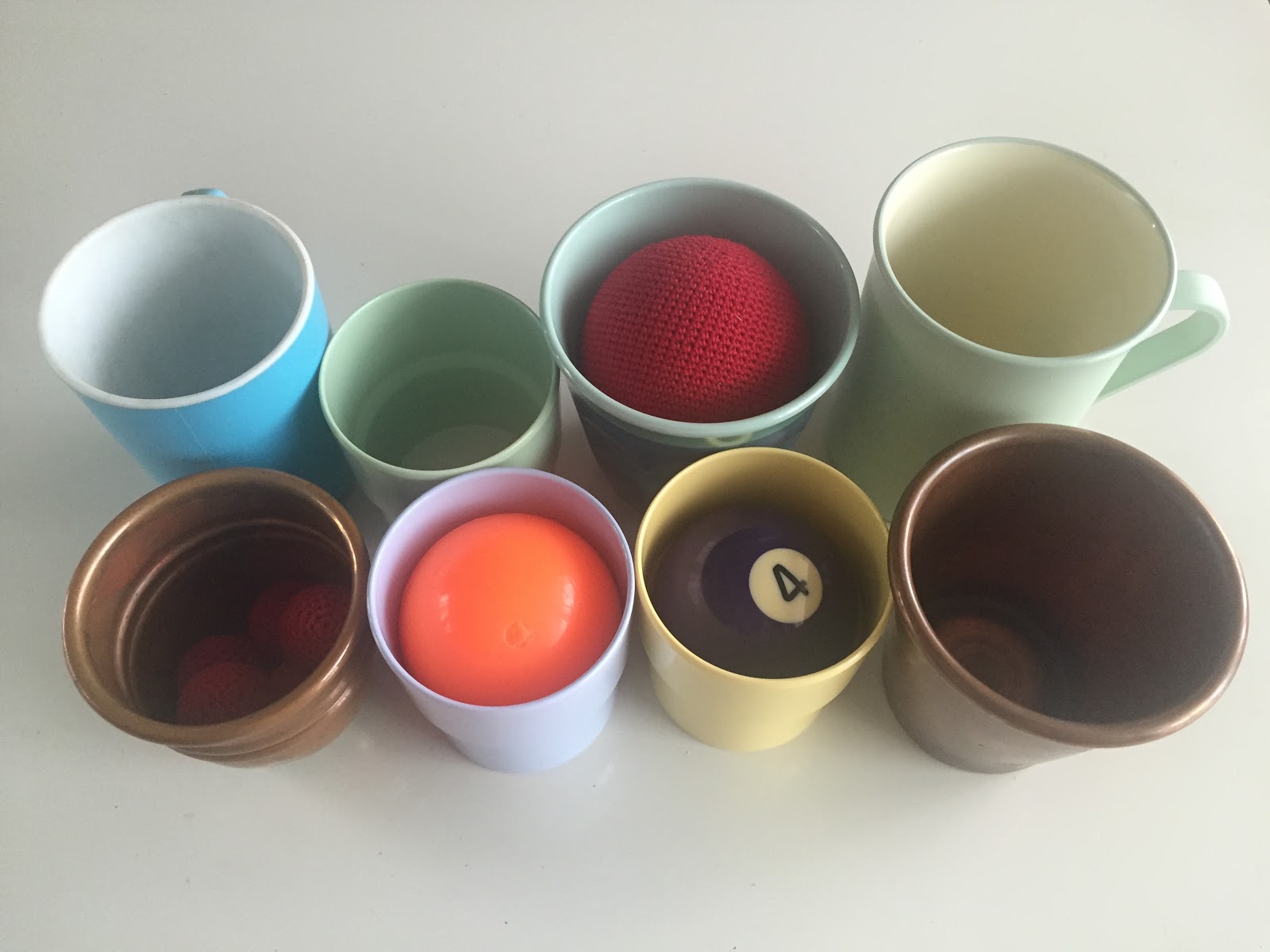 子供のマジックセットの中に入っているカップを思い出させます。
