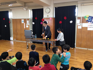 6. 幼稚園児向けのイベントでマジックショー。同じく長テーブル。