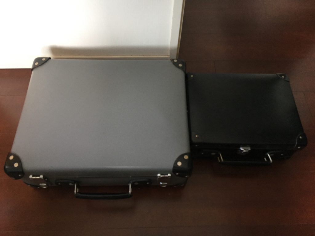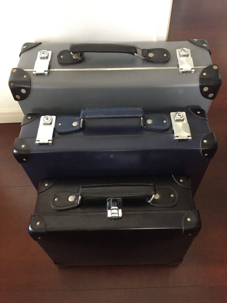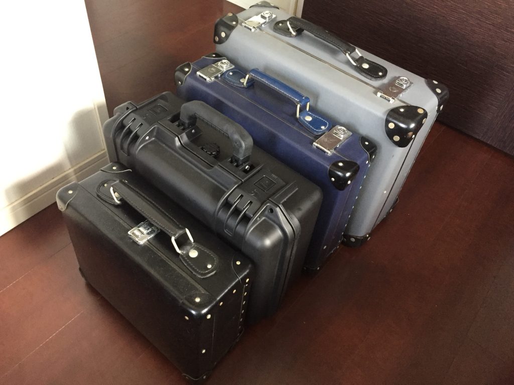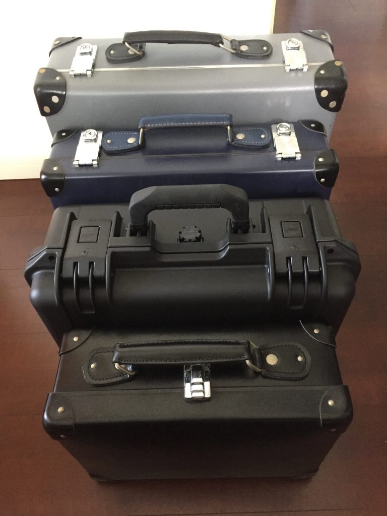 そのほかに使っているグローブトロッターの別サイズと最近買ったペリカンの鞄、ケースとの比較。