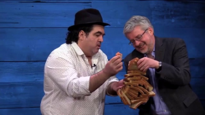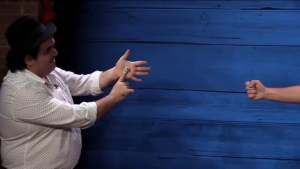 彼はこのショーではコインやトランプカードを使わずに代わりにビスケットや食パンを使います。その他ソーセージにサインをさせたり。