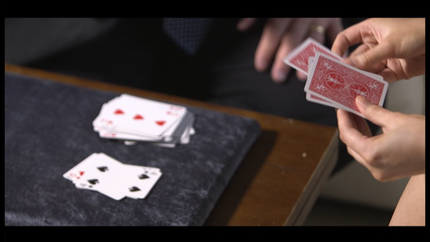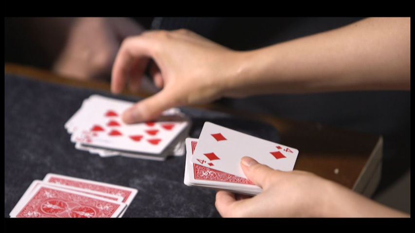 カードを交互にして片方を取り除く演出(Reverse Faro)はとても良いと思った。この演出を他で使えないものか?考えてみたいと思う。