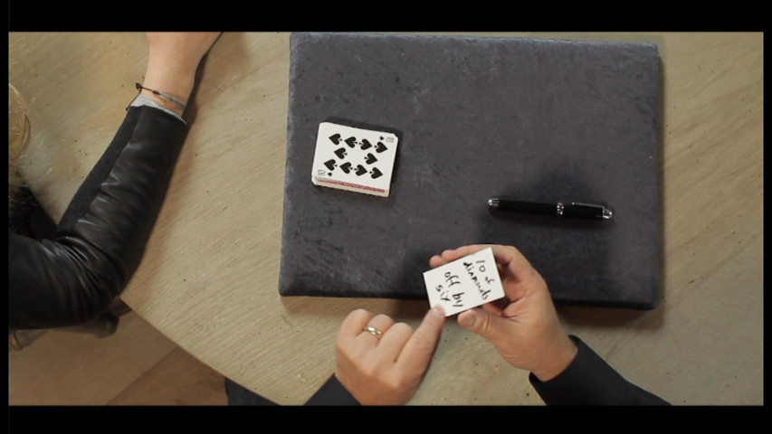 最初の予言から6枚ずれていると言う演出で英語では「10 of diamonds off by six」と書いている。これで6枚ずれているという意味になるそう。