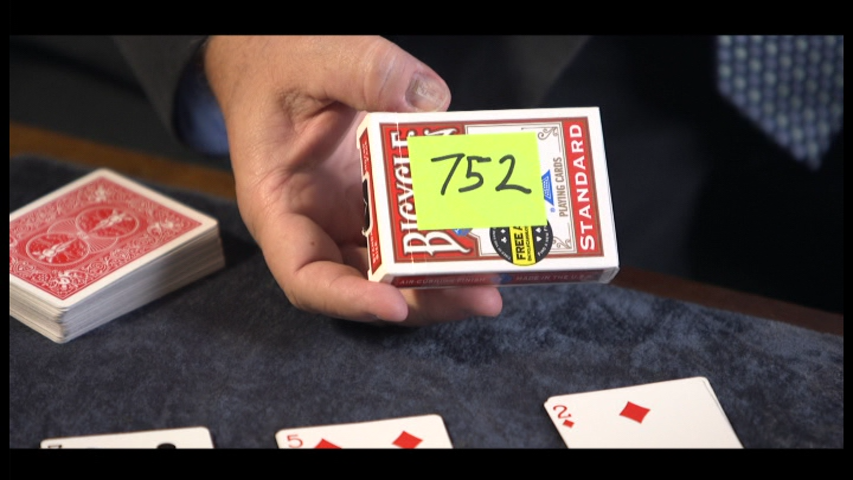マジシャンと客の選んだ3枚のカードがそれぞれ一致してその3枚の数字が予言されていたというマジック。