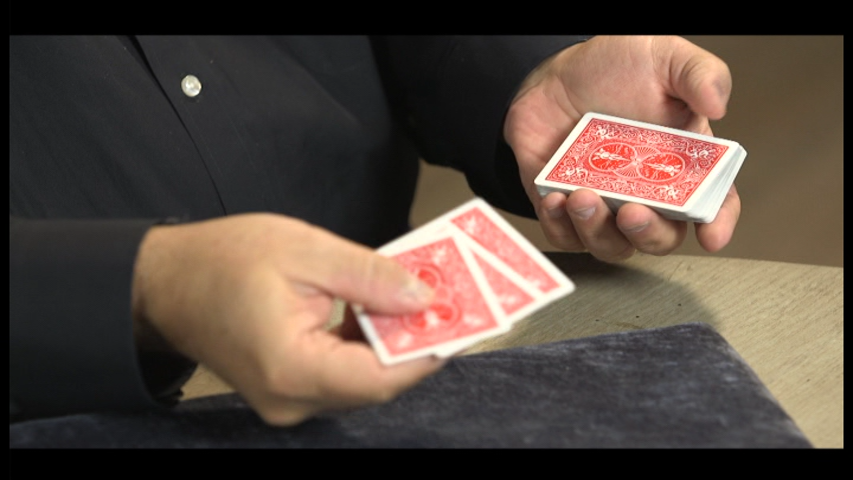 3枚を選ぶまでが手数が多い。「Gilbreath Principle」の原理を使っているが手数が多い割にはたった3枚の一致だけなのかという気もする。